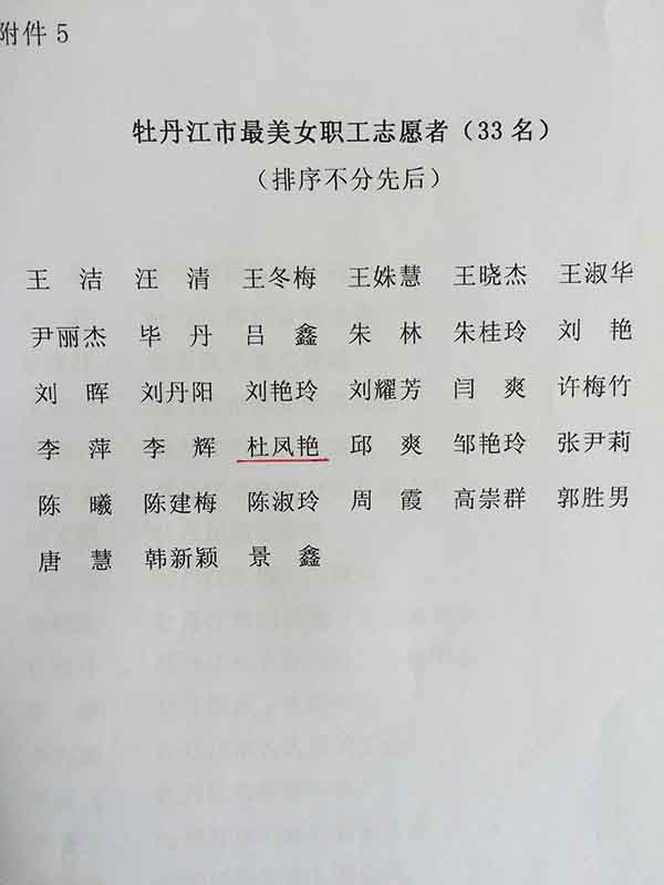 公司勞務(wù)公司經(jīng)理杜鳳艷同志任職以來,能夠認(rèn)真履職盡責(zé)、全力維護(hù)農(nóng)民工的合法權(quán)益,為企業(yè)創(chuàng)建和諧的勞動用工關(guān)系做出了積極的貢獻(xiàn)。在具體的勞務(wù)用工管理工作過程中,她能夠嚴(yán)格按照國家和行業(yè)管理規(guī)定,建立健全企業(yè)勞務(wù)用工工作管理制度,對進(jìn)入企業(yè)務(wù)工的農(nóng)民工建立實名制檔案,并經(jīng)常深入到施工現(xiàn)場第一線,當(dāng)面聽取農(nóng)民工兄弟的真實反映,主動了解農(nóng)民工工資實際發(fā)放狀況,及時化解可能存在的農(nóng)民工工資拖欠隱患,得到了農(nóng)民工兄弟的高度贊揚(yáng),農(nóng)民工兄弟高興地說“有杜部長在,我們在牡安出勞務(wù)很安心”。在化解勞動用工矛盾時,她能夠不計時間早晚、不辭多次辛苦、不怕過多費(fèi)口舌,秉承公平、公正、公開的原則,以事實為依據(jù),在施工總包、勞務(wù)分包、勞務(wù)負(fù)責(zé)人之間一碗水端平、秉公調(diào)和處理矛盾糾紛,努力做到讓各方都滿意。幾年來,一些曾揚(yáng)言跳樓、封道、上訪的糾紛人和事,都在她的耐心處理下得以平穩(wěn)處理和積極消化,沒有為企業(yè)造成不良影響、沒有為社會造成不穩(wěn)定因素。在她的直接努力下,企業(yè)未發(fā)生過農(nóng)民工討薪越級上訪等不良事件,公司連續(xù)榮獲“黑龍江省勞動保障A級誠信單位”榮譽(yù)稱號。她本人榮獲市總工會頒發(fā)的“最美女志愿者”光榮稱號。